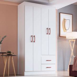 O(a) Guarda-Roupa Solteiro Rosario 4 Portas 2 Gavetas Branco - Doripel é produzido em MDP na escala de brilho Semi-Brilho, e possui um grau de dificuldade de montagem: Médio.