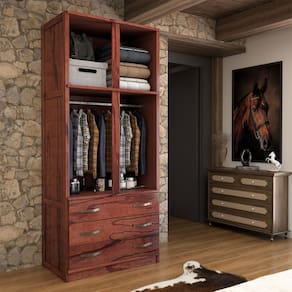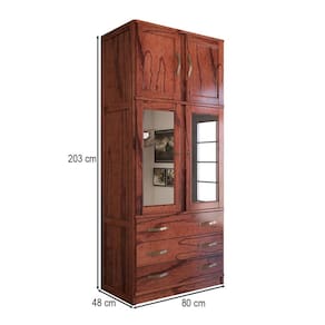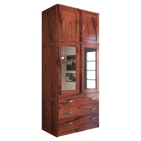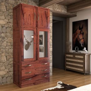 O(a) Guarda-Roupa Solteiro Rústico 4 Portas 3 Gavetas Madeira Maciça com Espelho Mogano - Loja é produzido em Madeira Maciça e Pinus na escala de brilho Alto Brilho, e possui um grau de dificuldade de montagem: Médio.