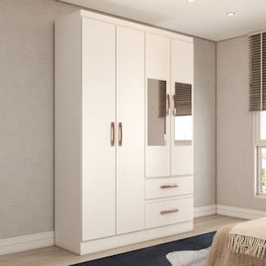 O(a) Guarda-Roupa Solteiro São Francisco 4 Portas 2 Gavetas com Espelho Branco Flex - Loja é produzido em MDP na escala de brilho Semi-Brilho, e possui um grau de dificuldade de montagem: Médio.