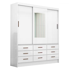 O(a) Guarda-Roupa Solteiro Sevilha 3 Portas 9 Gavetas com Espelho Branco - Carioca Móveis é produzido em MDP na escala de brilho Fosco e Semi-Brilho, e possui um grau de dificuldade de montagem: Médio.