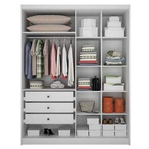 Guarda Roupa Solteiro Sevilha 4 Portas 3 Gavetas Neve com Nicho e Espelho – Novo Horizonte