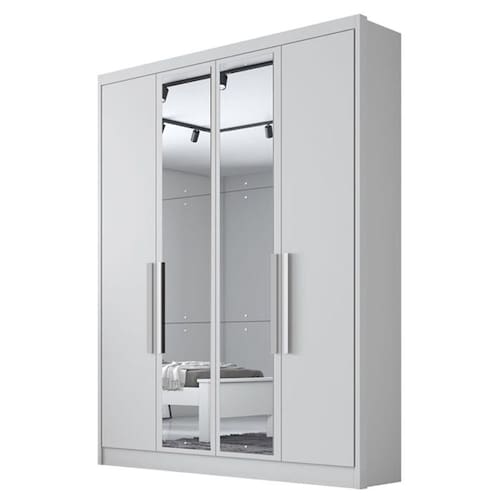 Guarda Roupa Solteiro Sevilha 4 Portas 3 Gavetas Neve com Nicho e Espelho – Novo Horizonte