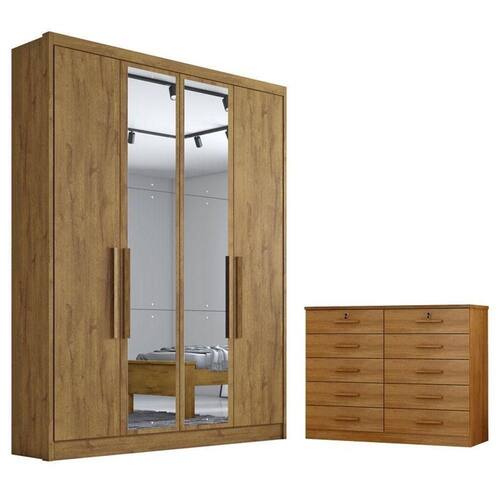 Guarda Roupa Solteiro Sevilha 4 Portas 3 Gavetas Cumaru 23 com Espelho Horizonte