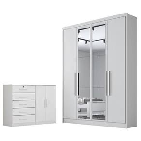 Guarda Roupa Solteiro Sevilha com Nicho e Espelho e Cômoda Seul Neve - Horizonte