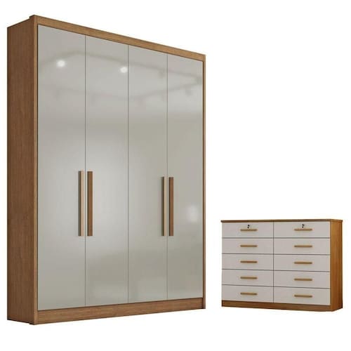 Procurando móveis para que seu quarto fique mais bonito e funcional? Aqui você encontra a opção ideal e com muita qualidade. O conjunto composto pelo guarda roupa da linha Sevilha possui várias repartições, gavetas, prateleiras, cabideiros garantindo mais organização para suas roupas e pertences. O gaveteiro da linha Milão proporciona espaço extra possui 10 gavetas equipadas com corrediças telescópicas trazendo suavidade ao abrir e fechar. Venha conferir e garantir o seu!