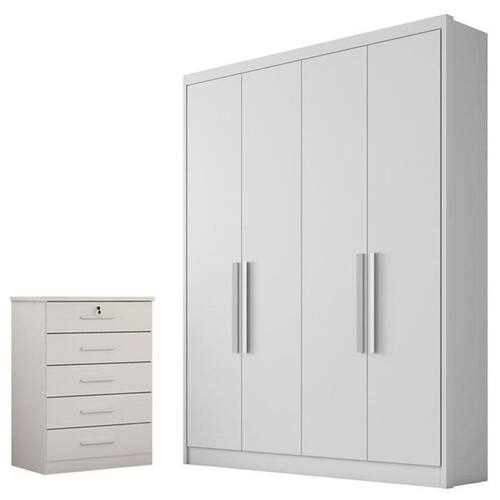 Guarda Roupa Solteiro Sevilha 4 Portas 3 Gavetas Neve Novo Horizonte