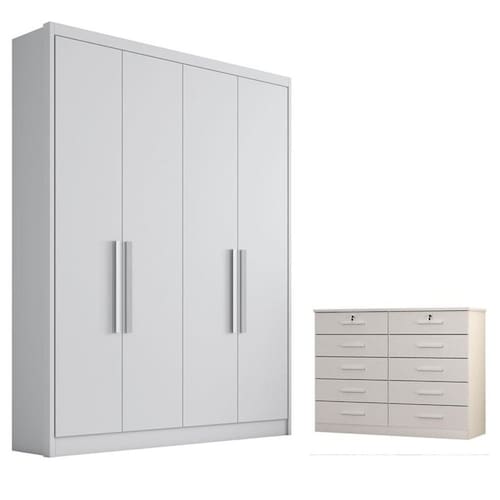 Guarda Roupa Solteiro Sevilha e Gaveteiro Milão com Chave Neve - Novo Horizonte