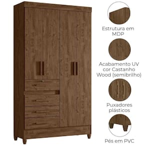 Com design inteligente para valorizar qualquer ambiente, o Guarda-Roupa Solteiro Sobral oferece praticidade e organização no dia a dia. Estrutura em MDP (15/ 12 mm) e acabamento em pintura UV. Composto por portas com dobradiças metálicas, cabideiro interno (alumínio), prateleiras e gavetas (uma com trava de segurança) com corrediças metálicas. Produto com dupla opção de montagem: pés em PVC ou sapatas plásticas (2 mm) conforme preferência do cliente. Este produto será entregue em 02 volumes.