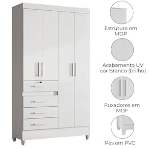 Com design inteligente para valorizar qualquer ambiente, o Guarda-Roupa Solteiro Sobral oferece praticidade e organização no dia a dia. Estrutura em MDP (15/ 12 mm) e acabamento em pintura UV. Composto por portas com dobradiças metálicas, cabideiro interno (alumínio), prateleiras e gavetas (uma com trava de segurança) com corrediças metálicas. Produto com dupla opção de montagem: pés em PVC ou sapatas plásticas (2 mm) conforme preferência do cliente. Este produto será entregue em 02 volumes.