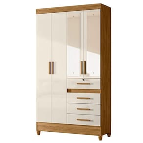Guarda Roupa Solteiro Sobral com Espelho e Cômoda Lisboa Freijó Off White Moval