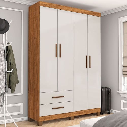 O(a) Guarda-Roupa Solteiro Genova 4 Portas 2 Gavetas 22112 Branco - Carioca Móveis é produzido em MDP na escala de brilho Fosco e Semi-Brilho, e possui um grau de dificuldade de montagem: Médio.