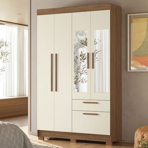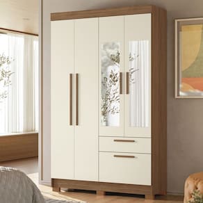 O(a) Guarda-Roupa Solteiro Sonora 4 Portas 2 Gavetas Jatoba/Areia com Espelho - Pnr Móveis é produzido em MDF, MDP e HDF na escala de brilho Semi-Fosco, e possui um grau de dificuldade de montagem: Médio.