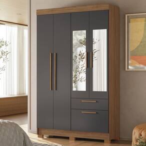 O(a) Guarda-Roupa Solteiro Sonora 4 Portas 2 Gavetas Jatoba/Grafite com Espelho - Pnr Móveis é produzido em MDF, MDP e HDF na escala de brilho Semi-Fosco, e possui um grau de dificuldade de montagem: Médio.