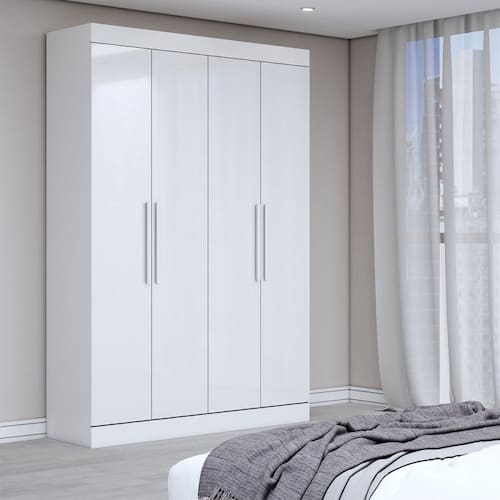 O(a) Guarda-Roupa Solteiro Splendore 4 Portas 2 Gavetas 100% Mdf Branco - Loja é produzido em 100% MDF na escala de brilho Brilhante e Semi-Brilho, e possui um grau de dificuldade de montagem: Difícil.