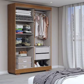 - Acompanha: 1 Guarda-Roupa, Kit Ferragens e Manual de Montagem