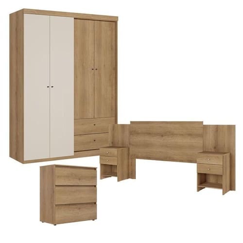Complete o quarto de solteiro com este conjunto funcional e moderno! O Guarda-Roupa Star oferece 4 portas e amplo espaço interno para roupas e acessórios. A Cômoda Gaveteiro Condessa proporciona armazenamento extra, enquanto a Cabeceira Formosa finaliza o conjunto com estilo. Estrutura resistente em MDP e acabamento Capuccino/Off White que combina com qualquer decoração.