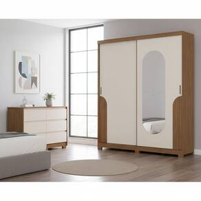 Guarda Roupa Solteiro Talles e Cômoda Ravenna Ambiente Nature Off White - Henn