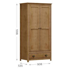 O Guarda-Roupa Topázio 2 Portas e 1 Gaveta da Finestra Móveis é a escolha ideal para quem busca elegância, resistência e funcionalidade. Produzido em madeira maciça de pinus de reflorestamento, oferece durabilidade e um acabamento refinado com pintura acetinada em verniz PU e UV. Possui 2 portas com dobradiças com amortecimento, 1 gaveta com corrediças telescópicas, prateleiras em madeira maciça com capacidade para até 10kg distribuídos, além de cabideiro em alumínio com suporte para até 8kg. Os puxadores metálicos em ouro envelhecido e os pés alongados em madeira maciça conferem um visual sofisticado ao móvel. Com amplo espaço interno, é perfeito para organizar roupas, acessórios e demais itens com praticidade e bom gosto.