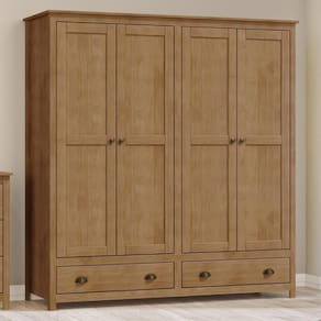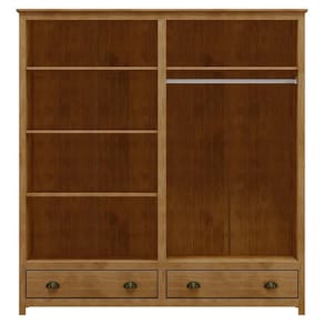 O Guarda-Roupa Topázio 4 Portas e 2 Gaveta da Finestra Móveis é a escolha ideal para quem busca elegância, resistência e funcionalidade. Produzido em madeira maciça de pinus de reflorestamento, oferece durabilidade e um acabamento refinado com pintura acetinada em verniz PU e UV. Possui 4 portas com dobradiças com amortecimento, 2 gavetas com corrediças telescópicas, prateleiras em madeira maciça com capacidade para até 10kg distribuídos, além de cabideiro em alumínio com suporte para até 8kg. Os puxadores metálicos em ouro envelhecido e os pés alongados em madeira maciça conferem um visual sofisticado ao móvel. Com amplo espaço interno, é perfeito para organizar roupas, acessórios e demais itens com praticidade e bom gosto.