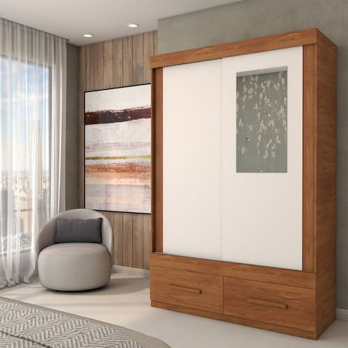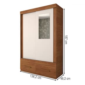 O(a) Guarda-Roupa Solteiro Trevor 2 Portas 2 Gavetas com Espelho Freijo/Off White - Loja é produzido em MDP e HDF na escala de brilho Fosco, e possui um grau de dificuldade de montagem: Médio.