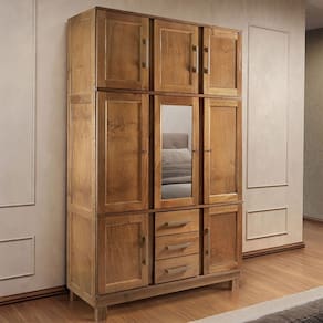 O(a) Guarda-Roupa Solteiro Tunnels 8 Portas 3 Gavetas com Espelho Madeira Maciça Castanho - Pnr Móveis é produzido em Pinus na escala de brilho Alto Brilho, e possui um grau de dificuldade de montagem: Médio.
