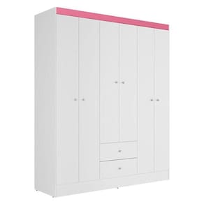 Guarda Roupa Solteiro Versa 6 Portas Branco Rosa Fosco - Kits Paraná