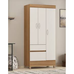 Guarda Roupa Solteiro Wi nd 3 Portas com Nichos e Cabideiro - Amendola Touch/ Off White Demóbile - Marrom