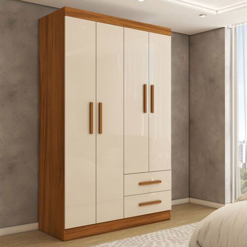 O(a) Guarda-Roupa Solteiro Zeus 4 Portas 2 Gavetas Freijó Trend/Off White Tx - Loja é produzido em MDP na escala de brilho Brilho e Fosco, e possui um grau de dificuldade de montagem: Médio.