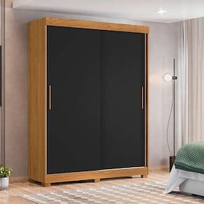 Conteúdo da Embalagem: 01 Guarda Roupa Spin com 2 Portas e 2 Gavetas Sem Espelho em Preto com Carvalho