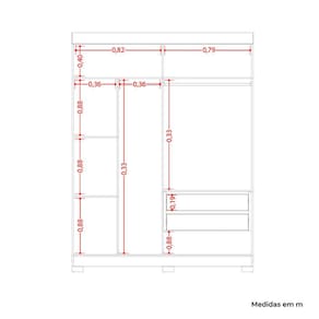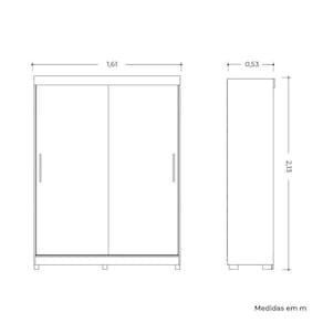 Conta com 2 portas de correr, sendo 1 espelho colado na parte externa, com sistema de freios deslizantes, trilho inferior de alumínio e puxadores de MDF revestidos.