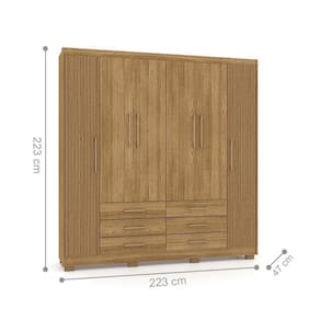 O Guarda Roupa feito em MDP dispõe de seis gavetas, seis portas, cabideiros com duas opções de montagem e possui espaço para guardar os sapatos.