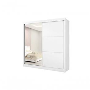 Particularidades do guarda-roupa: Características: - MDF - Gavetas com corrediças telescópicas - Profundidade da gaveta: 40 cm - Abertura total da gaveta - Suporte cabide metálico - Puxadores de alumínio - Produzido com chapa de 15mm e 25mm - Gavetas com puxador - Interno com 2 opções de montagem - Roldanas com molas - Espelho com película de