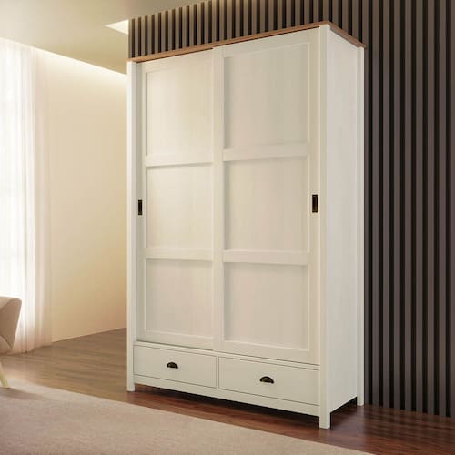 Guarda-Roupa Topázio 2 Portas de Correr Branco/Freijó Madeira Pinus - Finestra