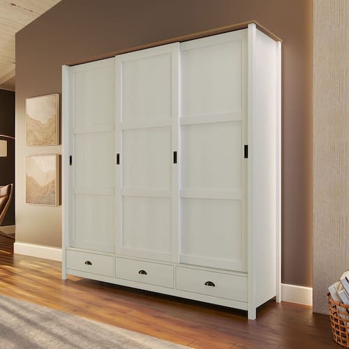 Guarda-Roupa Topázio 3 Portas de Correr Branco/Freijó Madeira Pinus - Finestra