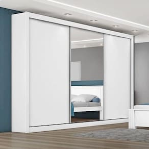 Guarda Roupa Toronto 3 Portas E 6 Gavetas - Móveis Europa Roupeiro Toronto 1 porta espelhada é uma união de qualidade, tamanho e beleza. Este Guarda Roupa é perfeito para seu espaço, possui excelente espaço interno com 6 gavetas com corrediças telescópicas que permite maior aproveitamento interno, e duas gavetas possuem chaves para armazenar com segurança seus pertences. Possui compartimento para malas e roupas de camas, prateleiras ficas e prateleiras removíveis , para pode acomodar roupas longas e compartimento para calçados. Para maior durabilidade possui costas grossas parafusada, trilho superior e inferior em alumínio. A porta central espelhada possui molduras de alumínio, as portas laterais de madeira possuem puxador perfild e alumínio. Possui roldana com molas, nesse sistema a porta não sai do trilho