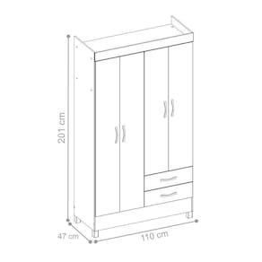 Feito em MDP, além de possuir 4 portas,2 gavetas e 4 prateleiras internas.
