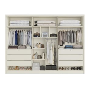 Personalize o interior do armário com prateleiras removíveis e/ou cabideiro para roupas longas, adaptando-o às suas necessidades de armazenamento.