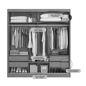 O Guarda Roupa Viena Casal com Espelho 2 Portas 4 Gavetas Bianchi conta com ferragens de qualidade, portas de correr com trilho superior e inferior em alumínio e sistema de deslizamento suave garantindo melhor funcionamento. O aproveitamento interno é ideal para um casal. São diversos nichos que facilitam a organização de roupas, calçados e acessórios. Aproveite.