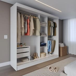Amplo Espaço Interno: Com 9 nichos, 4 prateleiras e 2 gavetas, oferece organização inteligente para roupas, calçados e acessórios.