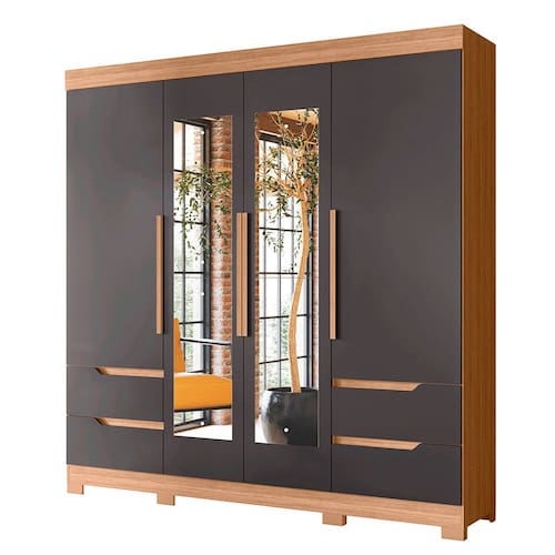 Guarda Roupa Vivacce Casal 4 Portas com Espelho Albatroz