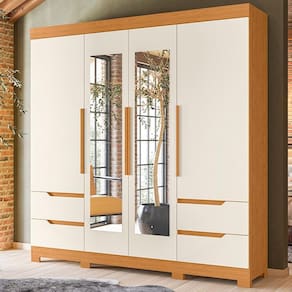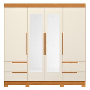 Produto: Guarda Roupa Vivacce com Espelho Cor: Cinamomo/Off White 04 Gavetas Com Frentes Usinadas E Corrediças Telescópicas, Puxadores De Mdf Revestidos, Cabideiros Em Alumínio, Pés Inclusos, Interna 100% Na Cor Do Produto. Escala de Brilho: Fosco Altura (m): 2,17 Largura (m): 2,12 Profundidade (m): 0,47 Peso (kg): 127 Material: MDP Acabamento: Pintura Uv Material do Puxador: Mdf Revestidos Tipo de Cabideiro: Alumínio Quantidade de Gavetas: 4 - Tipo de Corrediça: Telescópicas Quantidade de Portas: 4 - Tipo de Porta: Bater Quantidade de Prateleiras: 6 Rodízios: Não Quantidade de Pés: 8 - Material dos Pés: ABS Necessita Montagem: SIM Espelho: Kit 4 Espelhos 0,70 X 0,30 M Cada - Parafusados Na Porta Manutenção: Limpar Com Flanela Ou Pano Macio Seco, Não Utilizar Produtos Abrasivos, Desengordurantes, Álcool Ou Solvente. Não Expor O Produto Diretamente À Luz Solar E À Umidade. Garantia: 3 Meses