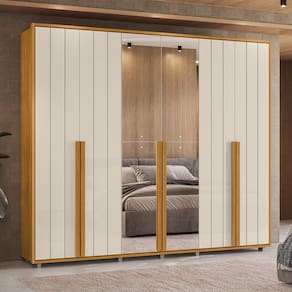 Características: Estrutura em MDF Pintura UV 02 Cabideiros extensíveis em alumínio 06 Portas com dobradiças metálicas 06 Gavetas com corrediças telescópicas 02 Cabideiros padrão em alumínio Puxadores em MDF Com Espelho Detalhes em ripado angular Peso total suportado: 114kg.