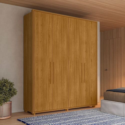 Estrutura 100% MDF 15cm e 25cm, portas com dobradiças metálicas com sistema de amortecimento, puxadores em MDF, gavetas com corrediças telescópicas, cabideiros em alumínio, cabideiros retrateis com pistão a gás, portas espelhadas e pés em poliestireno, Fixação com minifix e parafusos. Acabamento da Prateleira: Pintura UV Escala de Brilho da Prateleira: Semi-Brilho Possui Cabideiros: Sim Acabamento da Gaveta: Pintura Possui Organizador de Gaveta: Não Acabamento da Porta: Pintura UV Escala de Brilho da Porta: Semi-Brilho Altura dos Pés: 5 cm Altura Máxima dos Pés: 5.0000 Ambiente Principal: Quarto codigo_ean: 7900288237958 Complexidade da Montagem: Média: pode ser montado por mais de uma pessoa e/ou necessite de maior conhecimento para montagem Cor: Cumaru Cor do Produto: Cumaru Escala de Brilho: Semi-Brilho Espessura da Estrutura (mm): 15 mm Espessura das Portas (mm): 15 mm Espessura das Prateleiras (mm): 15 mm Espessura do Fundo (mm): 5 mm Espessura do Fundo das Gavetas (mm): 15 mm Itens Inclusos: 1 Guarda-Roupas e Kit Ferragem Linha ou Coleção: Domitorios Manual de Montagem e Instalação: https://product-hub-prd.madeiramadeira.com.br/706980314/documents/acfa74bc-8b19-4885-91aa-f0e059797368318775482617570921140204.pdf Marca: Madetec Material da Gaveta: MDF Material da Porta: MDF Material da Prateleira: MDF Material dos Pés: Plástico Material Principal: MDF modular: Não Necessita Montagem: Sim Origem do Produto: Nacional Peso: 155,9 kg Peso Máximo por Gaveta: 5 kg Peso Máximo por Prateleira: 5 kg Possui Calceiros: 01 Possui Espelho: Não Possui Pés: 06 Possui Portas: Sim Possui Prateleiras: Sim Produto Montado: Sim Quantidade de Cabideiros: 02 Cabideiros Quantidade de Prateleiras: 03 Prateleiras Recomendações de Uso, Manutenção e Limpeza: "Para a limpeza utilizar um pano limpo e seco. Não limpar com produtos abrasivos ou escovas; Não deixar exposta à luz do sol diretamente pois isso irá diminuir a vida útil do produto; Este produto Não é recomendado Para ambientes externos onde possa receber chuva." Sistema de Montagem: Girofix Tipo de Corrediça da Gaveta: Metálica Telescópica Tipo de Dobradiça/Corrediça da Porta: Metálica Tipo de Gaveta: Interna Tipo de Guarda-Roupa: Solteiro Tipo de Puxador da Gaveta: Não Possui Tipo de Puxador da Porta: Externo