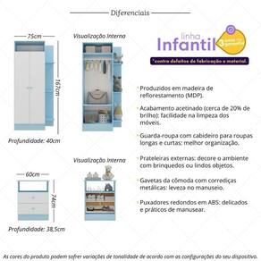 Guarda-roupas 2 Portas Com Cômoda 2 Gavetas Multimóveis Mp4264 - Azul/branco Azul/branco