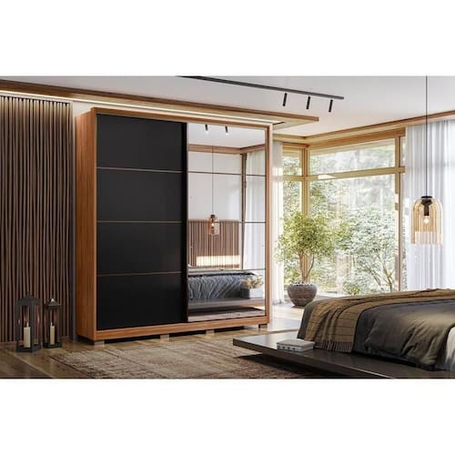 Guarda Roupas 2 Portas De Correr 3 Gavetas C/ Espelho E Pés Belga Amêndola/amêndola Ou Grafito - Demóbile