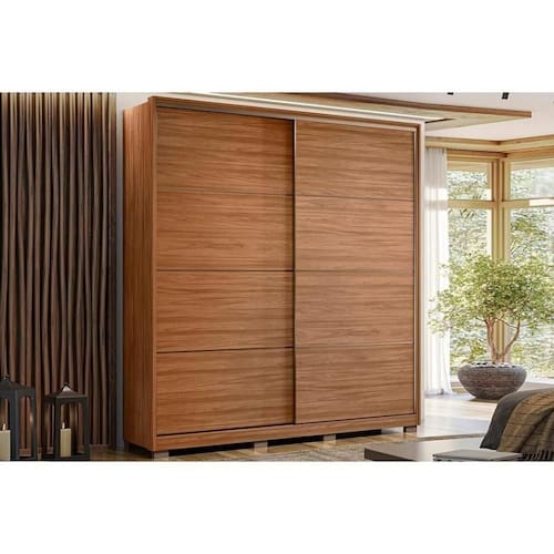 Guarda Roupas 2 Portas De Correr E 3 Gavetas C/ Pés Belga Nogueira/nogueira Ou Preto - Demóbile