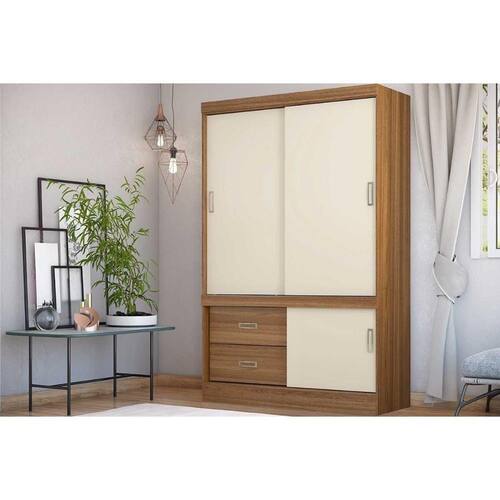 Guarda Roupa Solteiro 2 Portas e 3 Gavetas Estilo II Amêndola/Off White - Demóbile