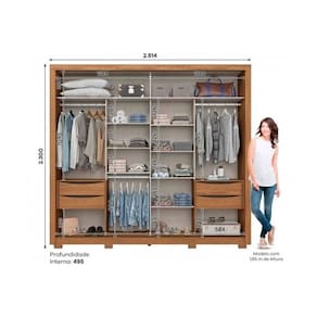 Dimensões(Cm): Comprimento(Profundidade): 51,5cm x Largura: 250cm x Altura: 230cm