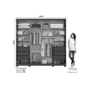 Dimensões(Cm): Comprimento(Profundidade): 52cm x Largura: 250cm x Altura: 240cm