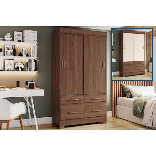 Guarda Roupas 2 Portas De Correr Marel C/ De Correr E 4 Gavetas Castanho/off White-henn